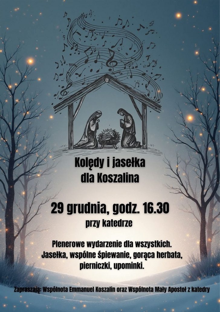 Wspólnota Emmanuel wraz ze wspólnotą Mały Apostoł, działającą przy katedrze, zapraszają mieszkańców na otwarte plenerowe wydarzenie świąteczne pn. „Kolędy i jasełka dla Koszalina”.